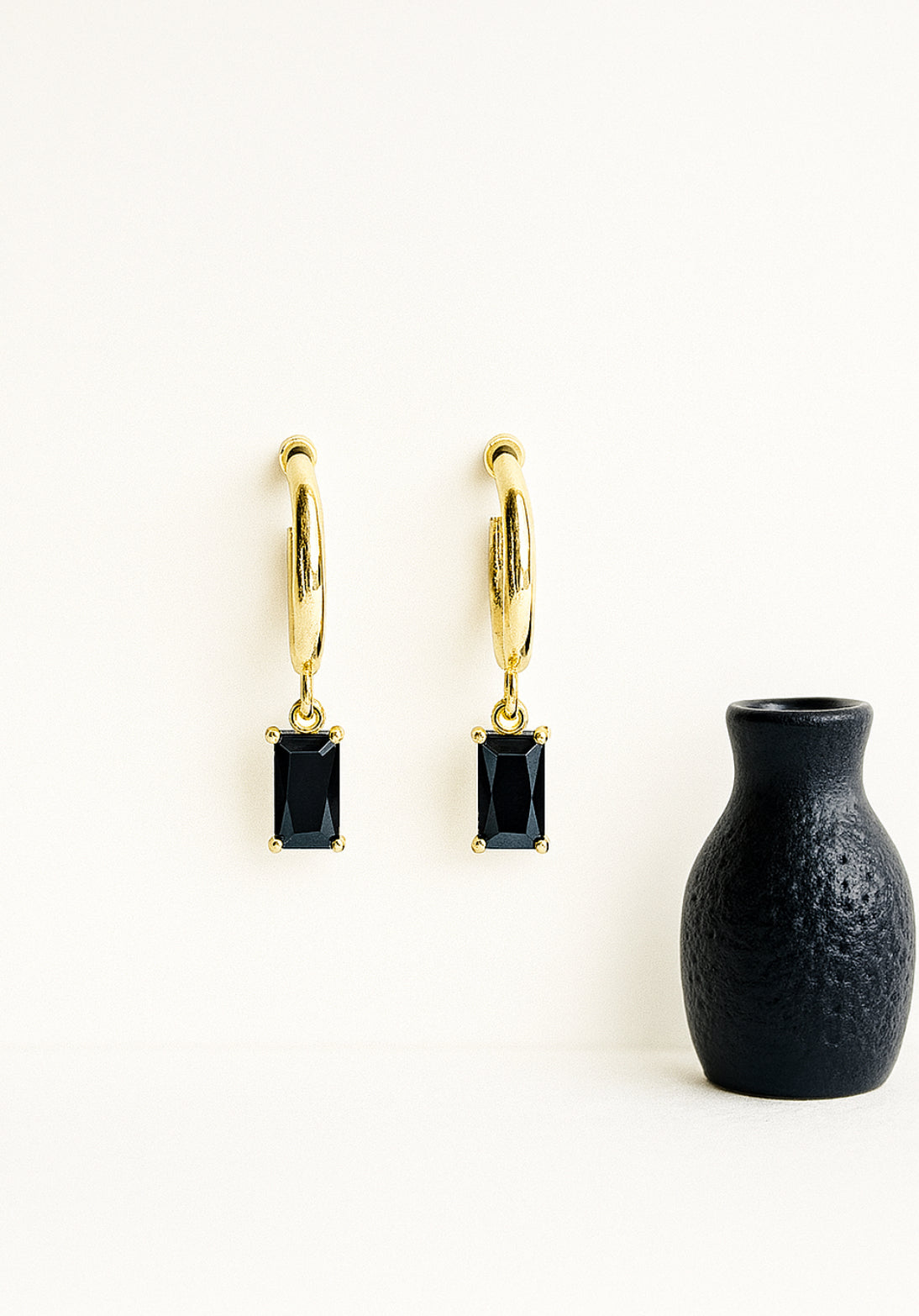 - Afmetingen: de oorbellen hebben een diameter van 1,5 cm, zwarte steentje is 0,8 cm lang en 0,8 cm breed