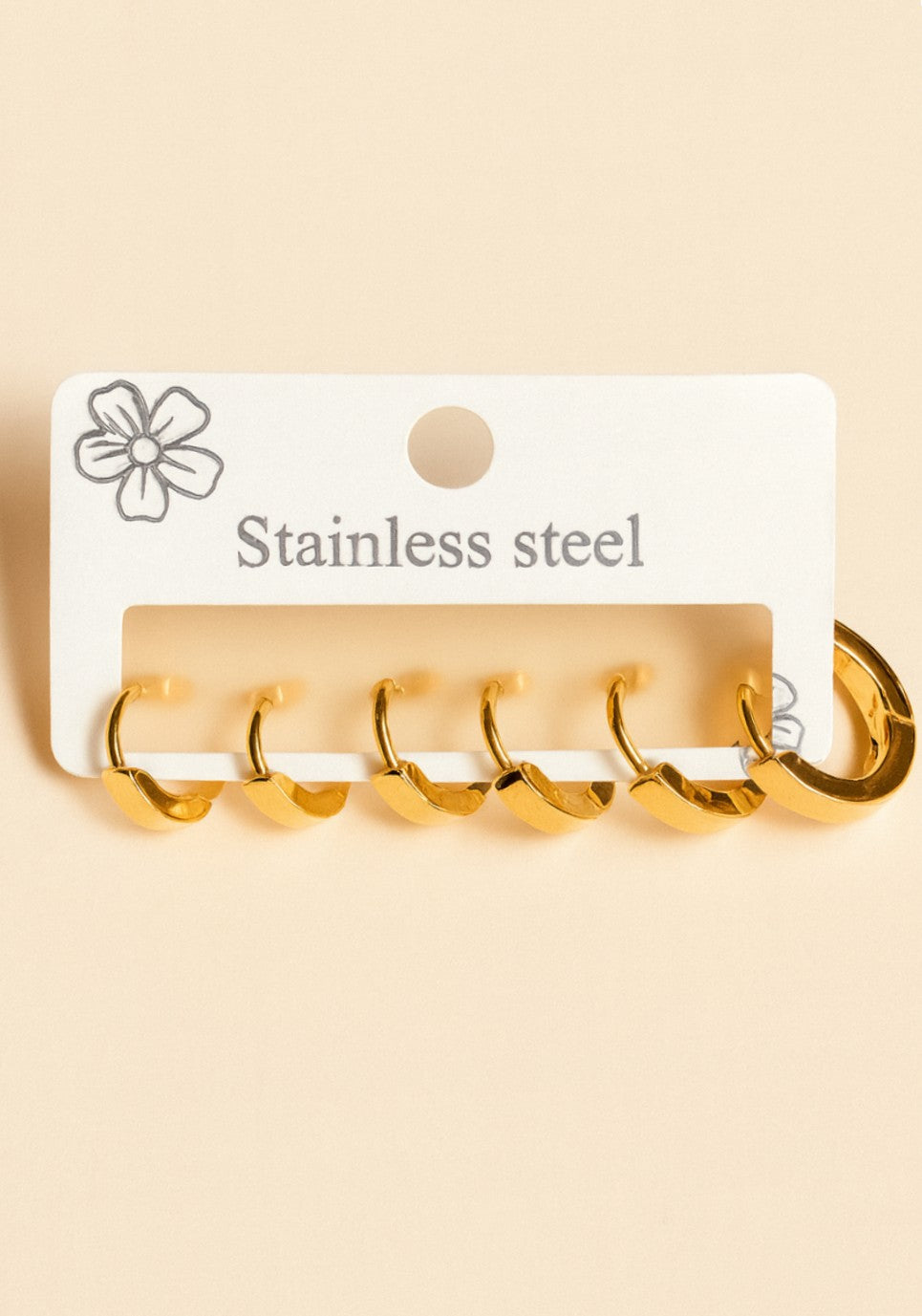 - Afmetingen: de oorbellen nr 1: diameter van 1,6 cm, 0,3 cm dik, oorbellen nr 2: diameter van 1,3 cm en 0,3 cm dik, oorbellen nr 3: diameter van 1,1 cm en 0,3 cm dik